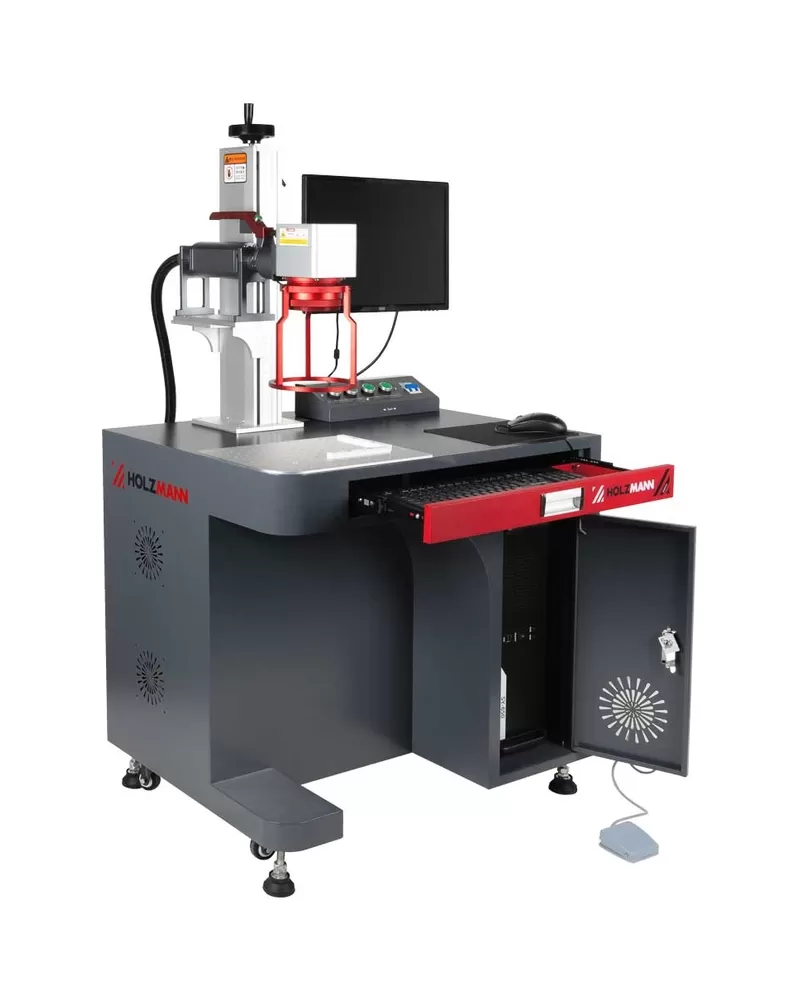 • Laserový popisovací stroj HOLZMANN LMM30W_230V popisuje kovy, keramiku a povrchově upravené kovy rychle a precizně