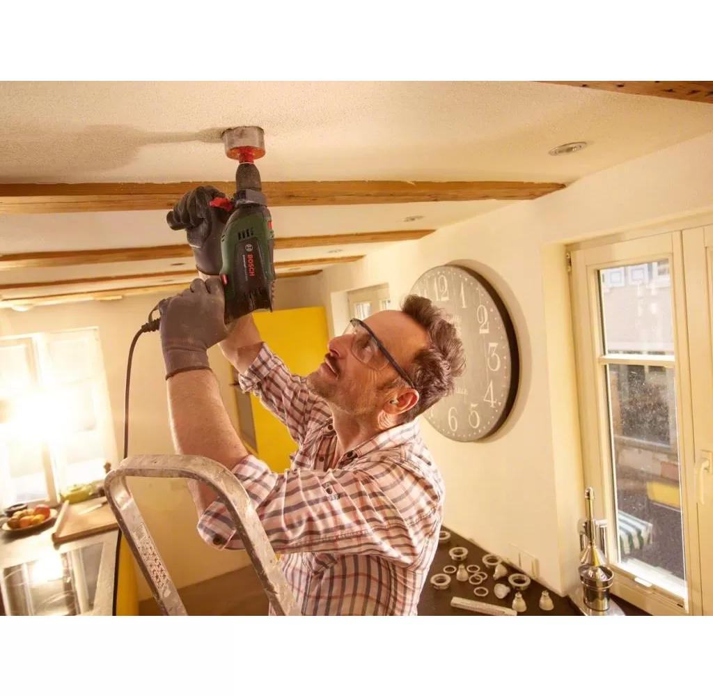 • Kompatibilní s vrtací pomůckou Bosch pro ještě přesnější práci: Jednoduché nastavení hloubky vrtání a bezprašná práce (lze obdržet jako příslušenství)