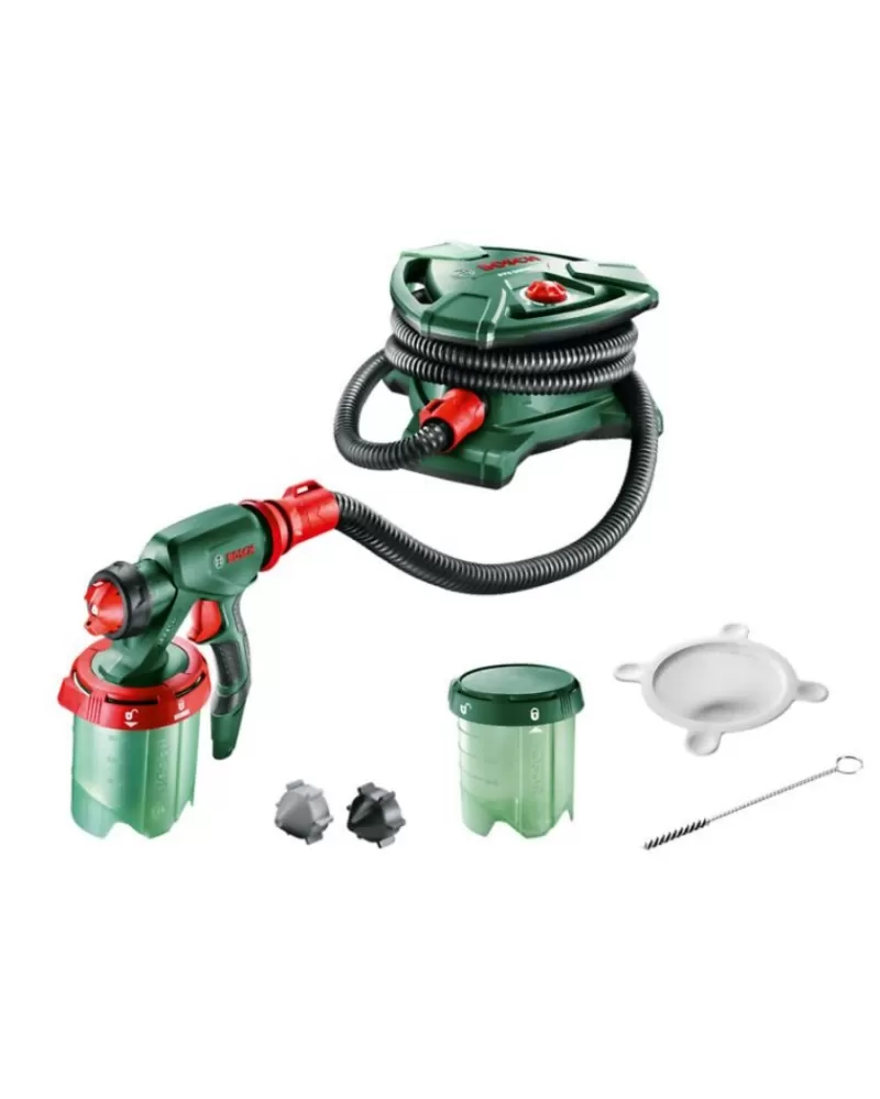 Systém pro nástřik barev PFS 5000 E umožňuje díky inovativní technologii ALLPaint stříkání všech druhů barev bez ředění. Domácí kutil tak může stejnou stříkací pistolí nanášet vodou ředitelné lazury na dřevo, řídké laky nebo husté nástěnné barvy. Nádoba na barvu tohoto systém pro nástřik barev pojme až litr barvy a díky systému SDS umožňuje rychlé doplňování a čištění. Funkce ConstantFeed u nádoby na barvu navíc zabezpečuje neustále soustavný přívod barvy stříkacího systému, i při práci nad hlavou a v blízkosti podlahy.