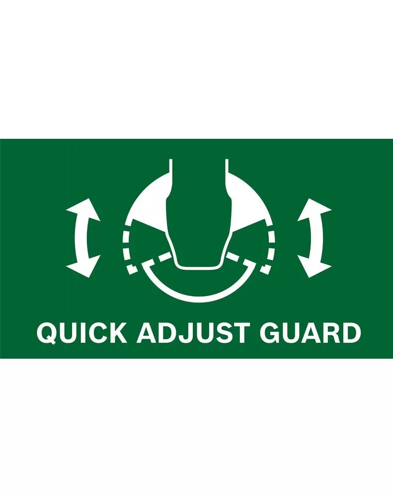 • Rychle seřiditelný kryt usměrňuje jiskry během provozu