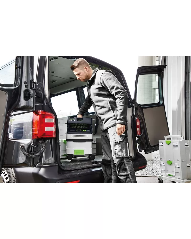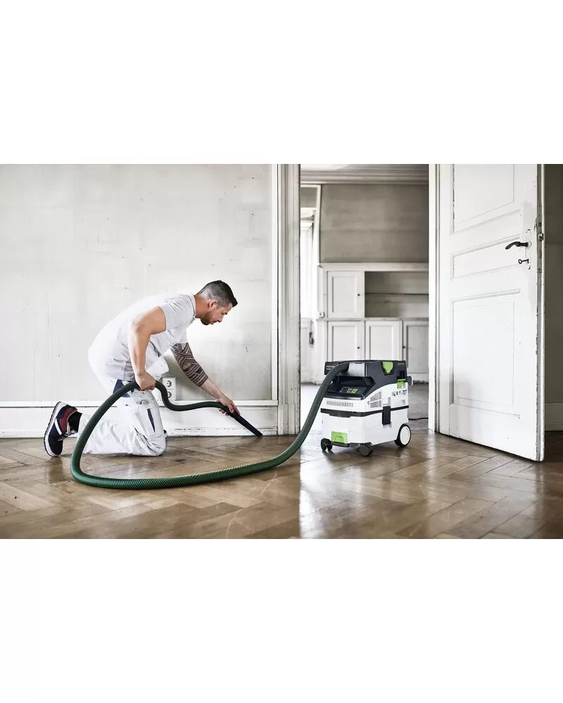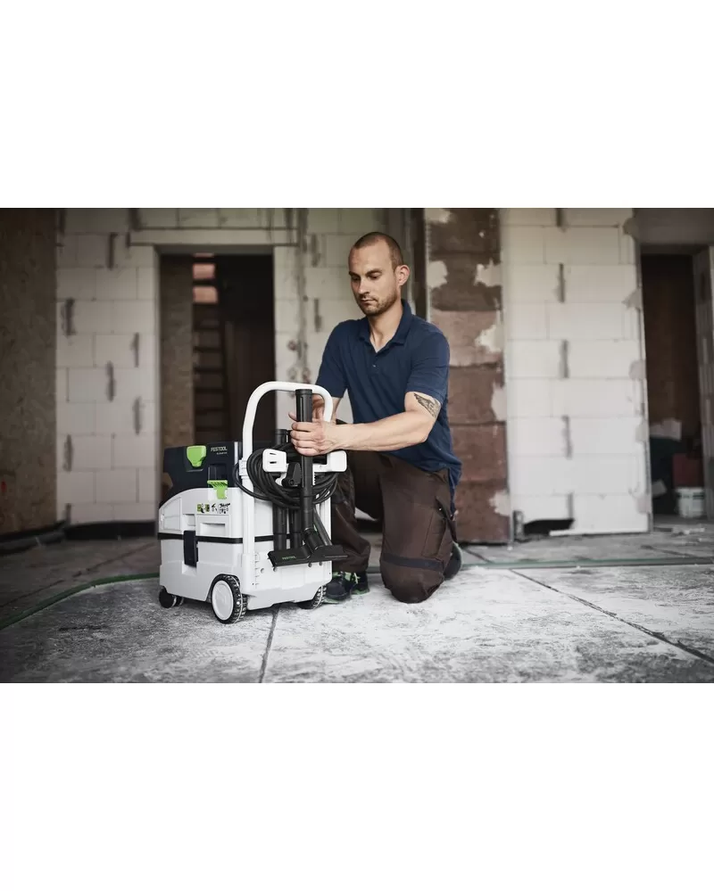 Malá hmotnost, kompaktní rozměry a spousta inovativních detailů – kompaktní vysavač CTL MIDI přesvědčí na celé čáře. S intuitivním dotykovým ovládáním, hladkou sací hadicí a rovnou odkládací plochou pro nářadí a pracovní materiál. Manuální čištění a výměna hlavního filtru zvenku pro vytrvalou práci šetrnou k zdraví. Díky integrované technologii Bluetooth® se mobilní vysavač automaticky spustí pomocí akumulátoru s Bluetooth® nebo volitelného dálkového ovládání. Integrovaný úložný rám na hadici, spojovací prvek Systainer T-LOC a praktické navíjení kabelu zabezpečují pořádek a rychlost. Ideální a komfortní pro čistý vzduch při servisních a montážních pracích.