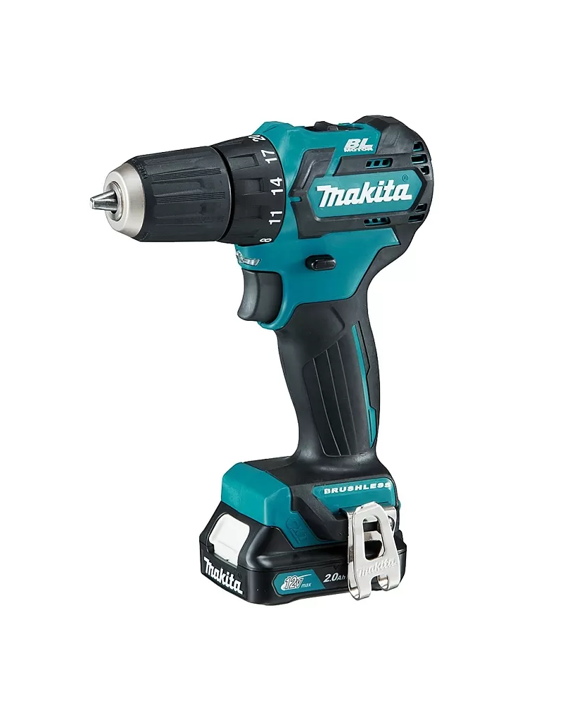 Kompaktní Aku bezuhlíkový vrtací šroubovák s nízkou hmotností a spolehlivým motorem 2x2,0Ah 10,8V Makita DF332DSAE.